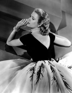 Jedna z najbardziej stylowych kreacji mody w historii kina to piękna koktajlowa sukienka Grace Kelly z filmu „Okno na podwórze” (1954) w reżyserii Alfreda Hitchcocka. Przyszła księżna Monako wcieliła się tu w przyjaciółkę fotografa (James Stewart), który z powodu złamanej nogi musi ograniczyć swoją aktywność i całe dnie spędza na obserwowaniu sąsiadów. Pewnego dnia mężczyzna trafia na ślad zbrodni i prosi swoją piękną znajomą o pomoc w rozwikłaniu zagadki.